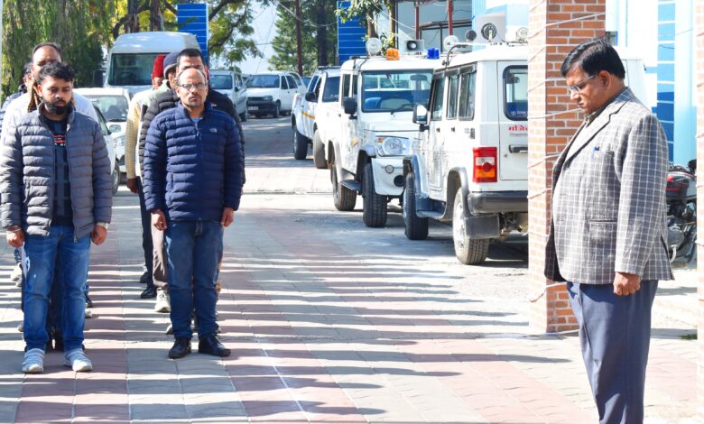 देश के स्वतंत्रता संग्राम में अपने प्राणों का सर्वोच्च बलिदान देने वाले शहीदों की स्मृति में 30 जनवरी को जनपद में सभी सरकारी, अर्द्ध सरकारी कार्यालयों में दो मिनट का मौन रखा गया। जिला कार्यालय, विकास भवन सहित जनपद के सभी तहसील एवं ब्लाक कार्यालयों में समस्त वरिष्ठ अधिकारियों एवं कार्मिकों ने राष्ट्रपिता महात्मा गांधी की 77 वीं पुण्यतिथि पर दो मिनट का मौन रखते हुए शहीदों को श्रद्धांजलि दी तथा आजादी को सहेज कर रखने में अपनी शहादत देने वाले शहीदों को भी नमन किया। आजादी के आंदोलन में असंख्य वीर-वीरांगनाओं ने अपने प्राणों की बाजी लगाई। आज उन सभी जाने अनजाने शहीदों को भी मौन रखकर श्रद्धांजलि दी गई और शहीदों द्वारा स्थापित आदर्शो एवं नैतिक मूल्यों को अपनाने तथा राष्ट्रहित को सर्वोच्च प्राथमिकता देकर एक समृद्ध राष्ट्र निर्माण का संकल्प लिया गया। इस मौके पर अपर जिलाधिकारी विवेक प्रकाश, कोषाधिकारी पंकज श्रीवास्तव सहित कलेक्ट्रेट परिसर के तमाम अधिकारी एवं कर्मचारी मौजूद थे।