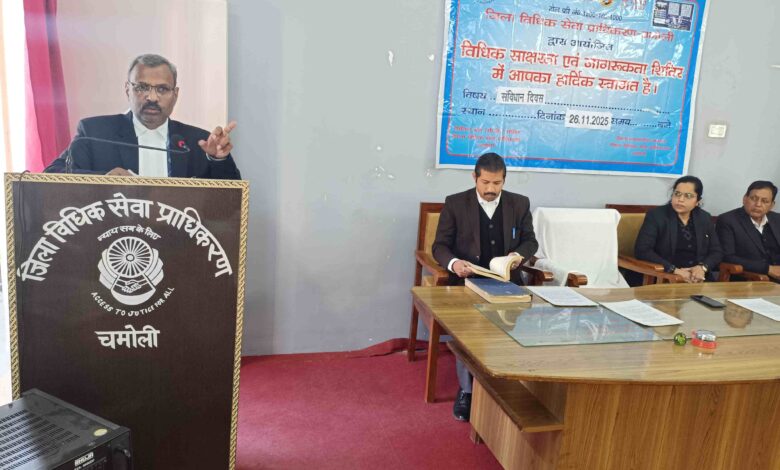 संविधान दिवस के अवसर पर जिला न्यायालय परिषद गोपेश्वर में जिला विधिक सेवा प्राधिकरण के तत्वाधान में एक विचार गोष्ठी का आयोजन माननीय जनपद न्यायाधीश विंध्याचल सिंह की अध्यक्षता में संपन्न हुआ। कार्यक्रम में संविधान की मूल भावना, नागरिक अधिकारों, कर्तव्यों तथा न्याय तक सबकी समान पहुँच जैसे महत्वपूर्ण विषयों पर विस्तृत चर्चा की गई। माननीय जनपद न्यायाधीश महोदय ने अपने उद्बोधन में कहा कि संविधान केवल एक दस्तावेज नहीं, बल्कि लोकतंत्र की आत्मा है, जो प्रत्येक नागरिक को बराबरी, न्याय एवं स्वतंत्रता का अधिकार प्रदान करता है।