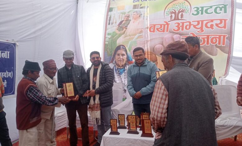 शुक्रवार को समाज कल्याण विभाग चमोली द्वारा अटल वयो अभ्युदय योजना के अन्तर्गत वरिष्ठ नागरिकों के सम्मान सुरक्षा व स्वास्थ्य हेतु राजकीय वृद्ध एवं अशक्त आवास गृह गोपेश्वर में एक कार्यक्रम का आयोजन किया गया। जिसमें 30 वृद्ध जनों का स्वास्थ्य विभाग के द्वारा निशुल्क स्वास्थ्य प्ररिक्षण, दवाई वितरण किया गया। कार्यक्रम के अवसर पर जनपद के विभिन्न विद्यालयों के द्वारा पेंटिंग, भाषण, निंबंध प्रतियोगिताओं में प्रतिभाग किया गया। जिसमें पेंटिंग प्रतियोगिता में गुरु राम राय पब्लिक स्कूल के बालिका आराध्या नेगी द्वारा प्रथम स्थान, बालिका आराध्या बिष्ट द्वारा द्वितीय स्थान तथा केन्द्रीय विद्यालय गोपेश्वर के बालक अंशुल द्वारा तृतीय स्थान प्राप्त किया गया। निबंध प्रतियोगिता में सुबोध प्रेम विद्या मंदिर की बालिका प्रिंयांशी पुंडीर द्वारा प्रथम स्थान, केन्द्रीय विद्यालय गोपेश्वर की बालिका तमन्ना द्वारा द्वितीय स्थान, 1008 गीता स्वामी इंटर कॉलेज गोपेश्वर द्वारा द्वितीय स्थान तथा 1008 गीता स्वामी इंटर कॉलेज गोपेश्वर के बालक आदित्य पोखरियाल द्वारा तृतीय स्थान प्राप्त किया गया। भाषण प्रतियोगिता में बालिका प्रियांशी द्वारा प्रथम एवं धीरज द्वारा द्वितीय स्थान प्राप्त किया गया।